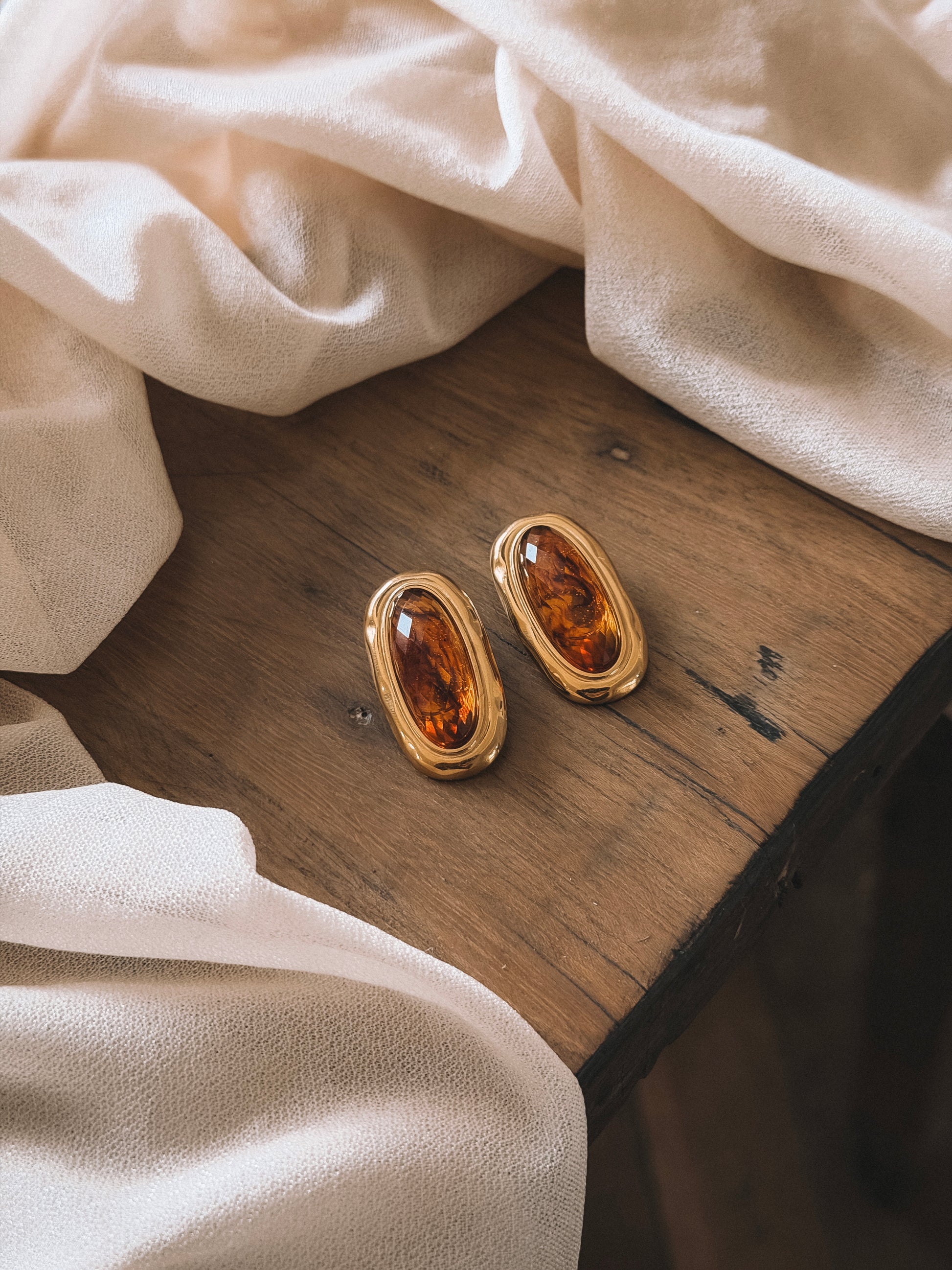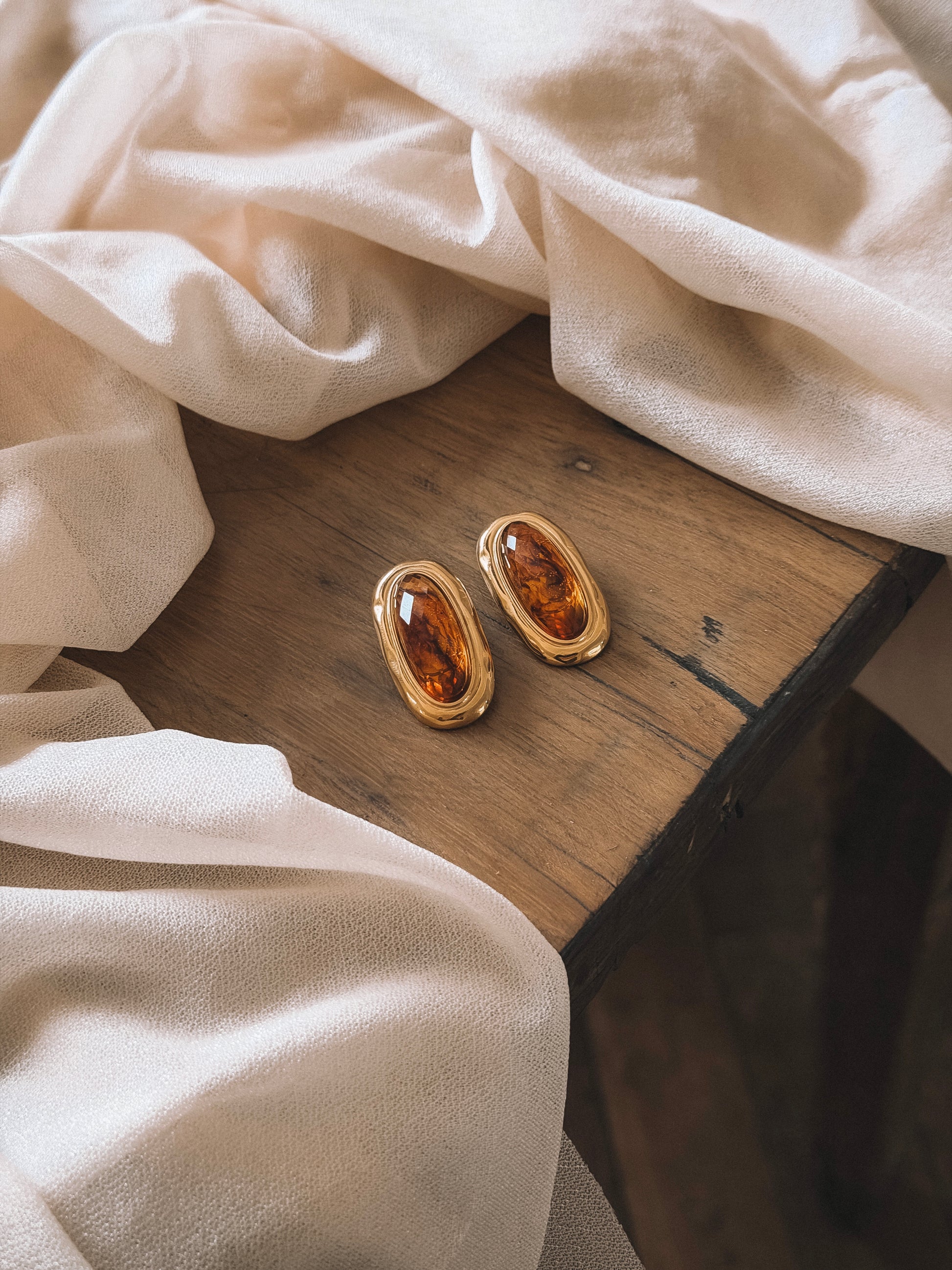 • Boucles d'oreilles ovale allongé délicatement bombé