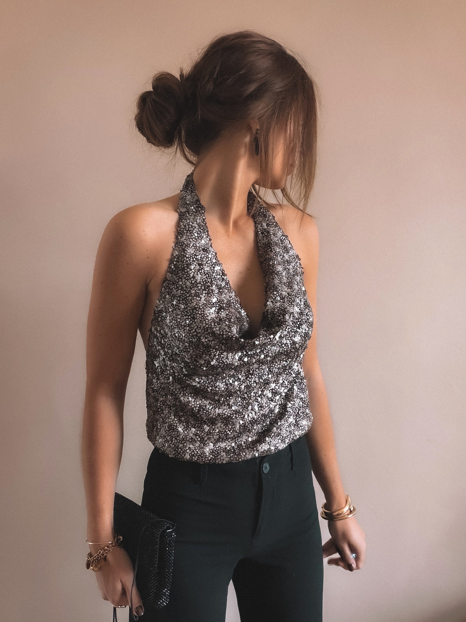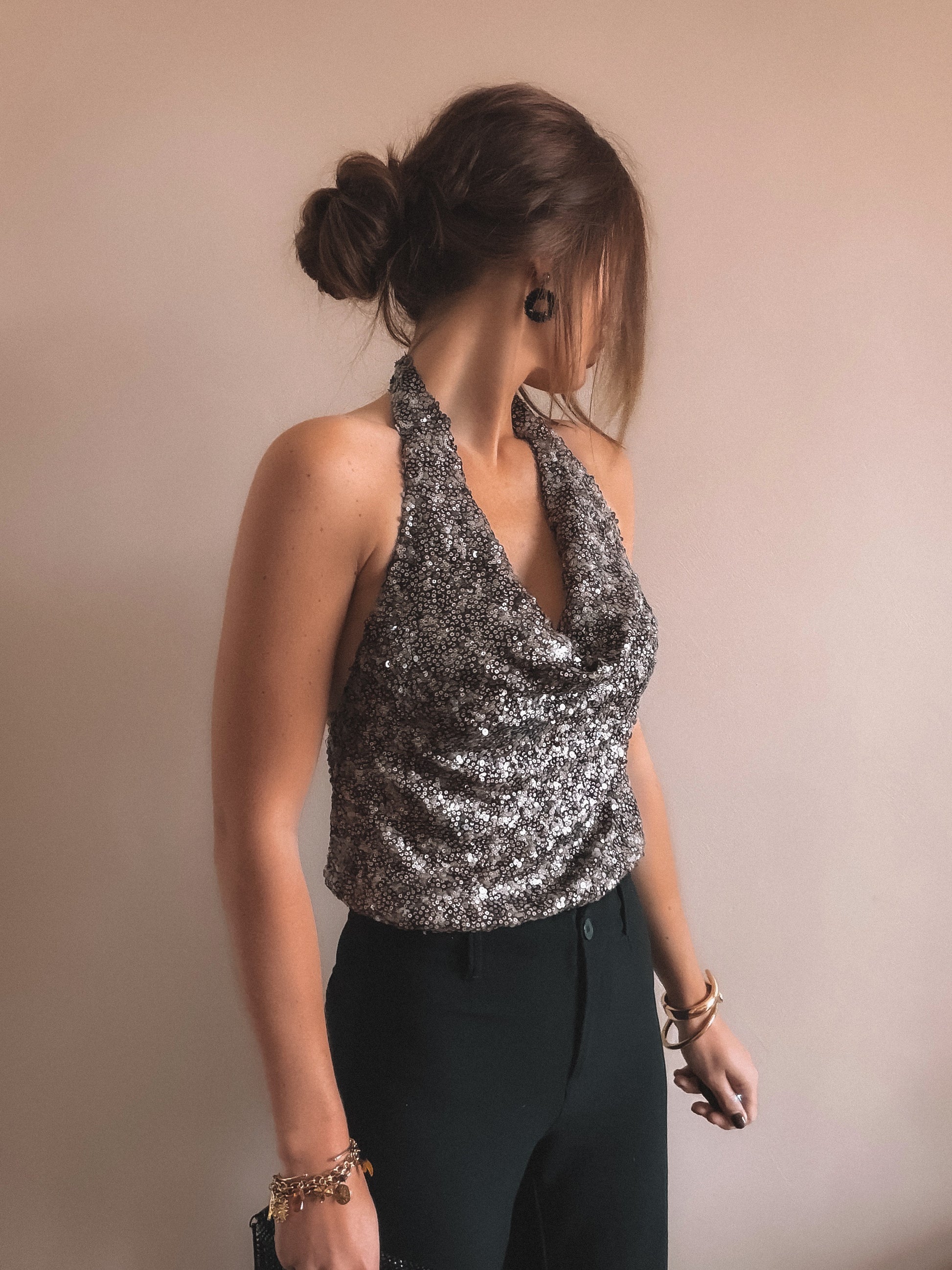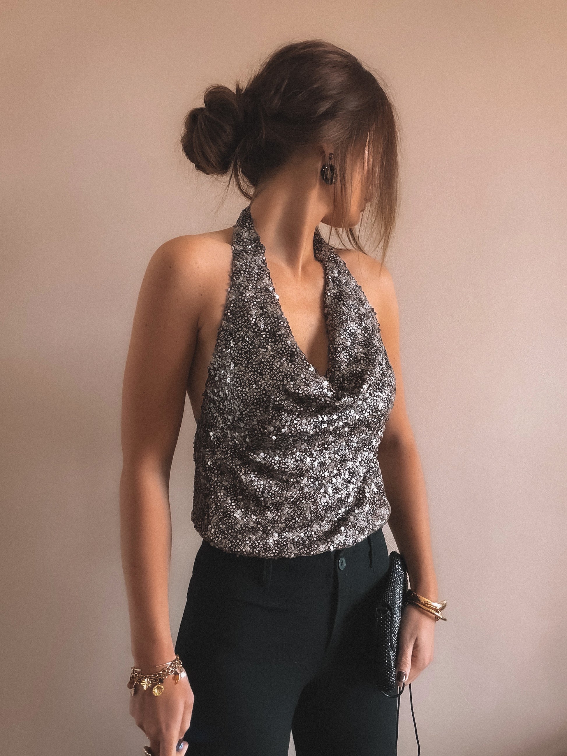 • Très belle pièce, épouse parfaitement la silhouette avec son dois sensuel et son col drapé scintillant