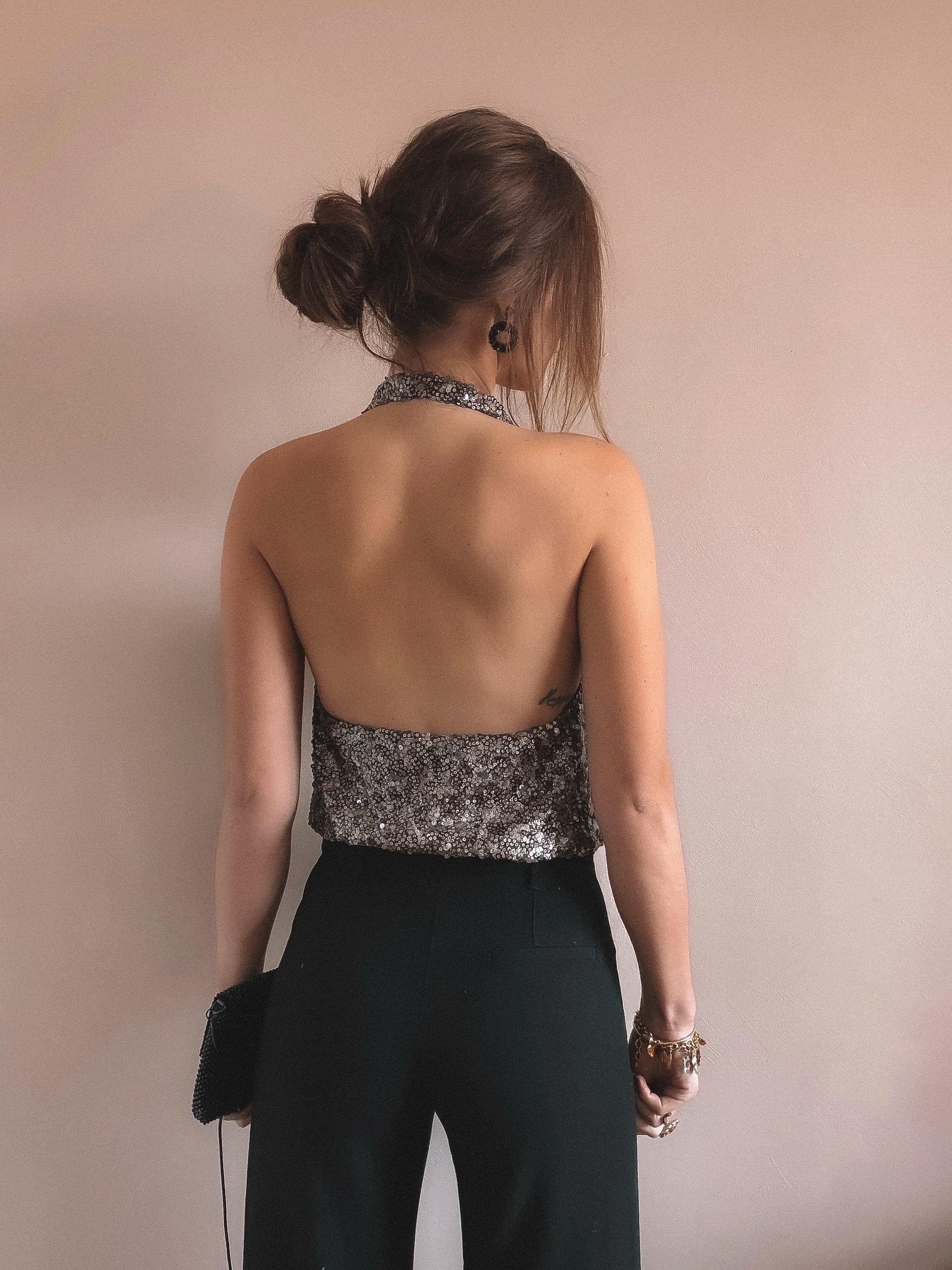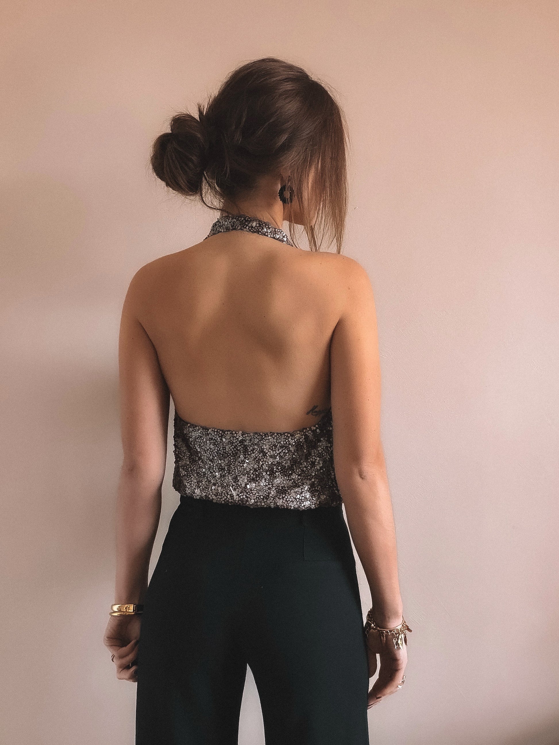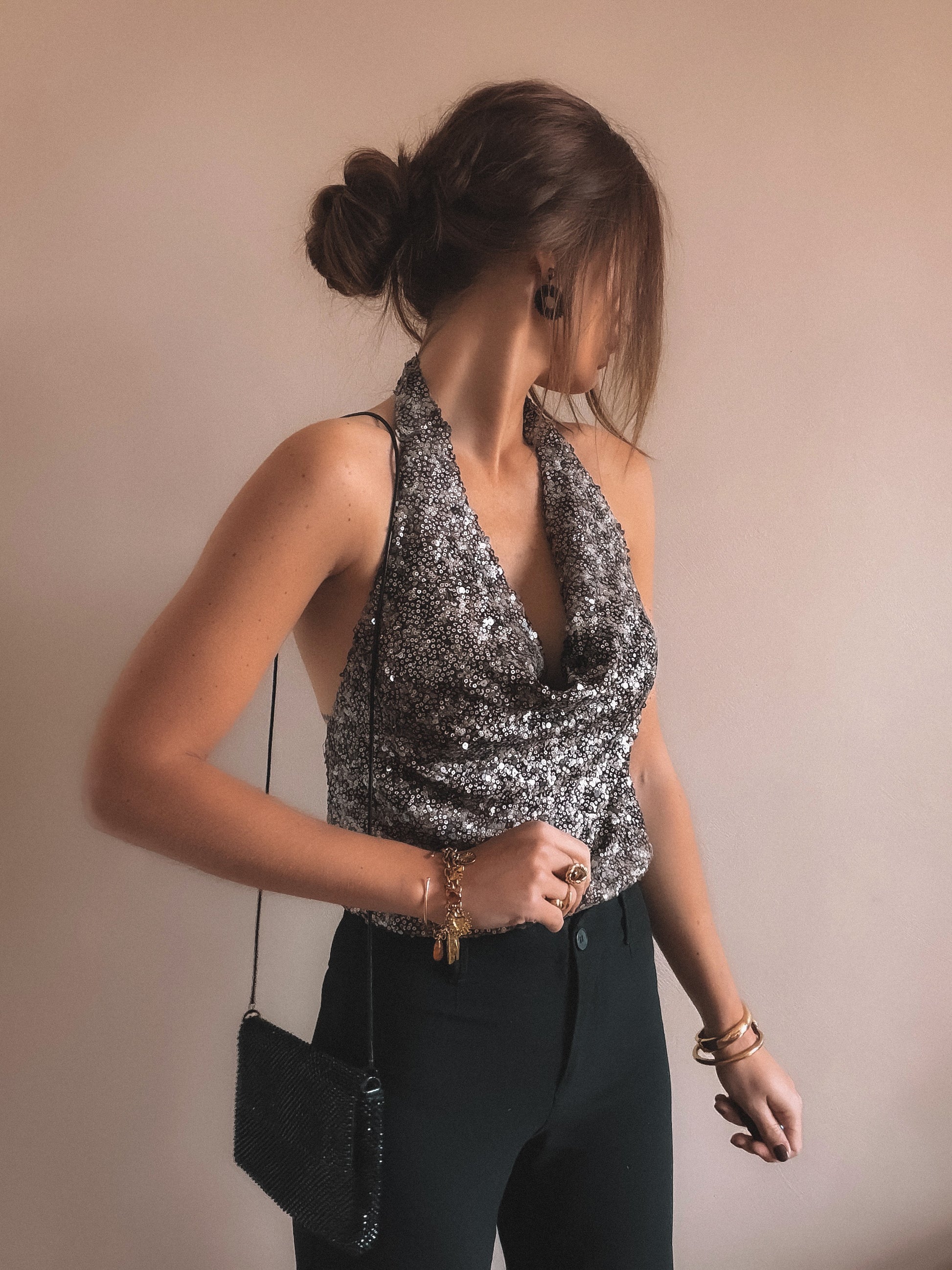 • Très belle pièce, épouse parfaitement la silhouette avec son dois sensuel et son col drapé scintillant