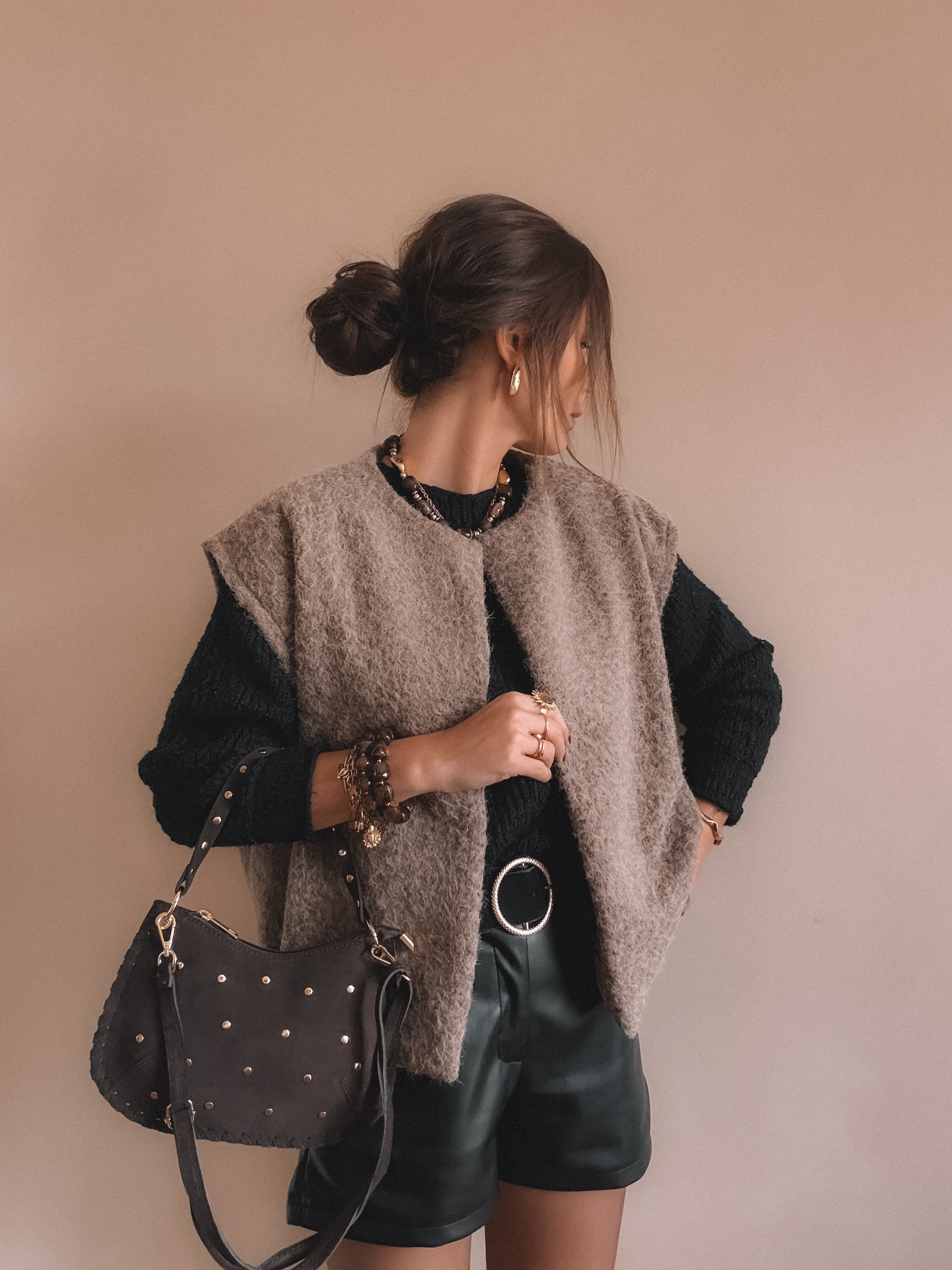 • Se porte ouvert par dessus une chemise ou pull, possède deux poches invisible sur les cotés