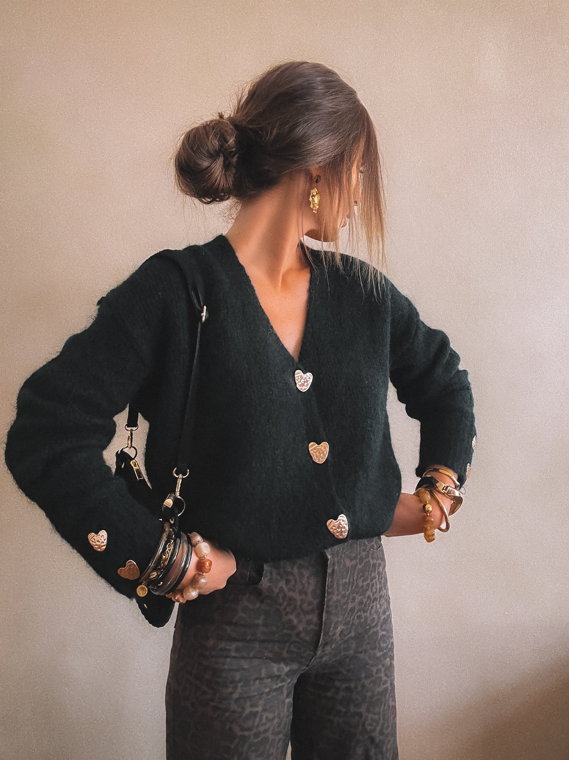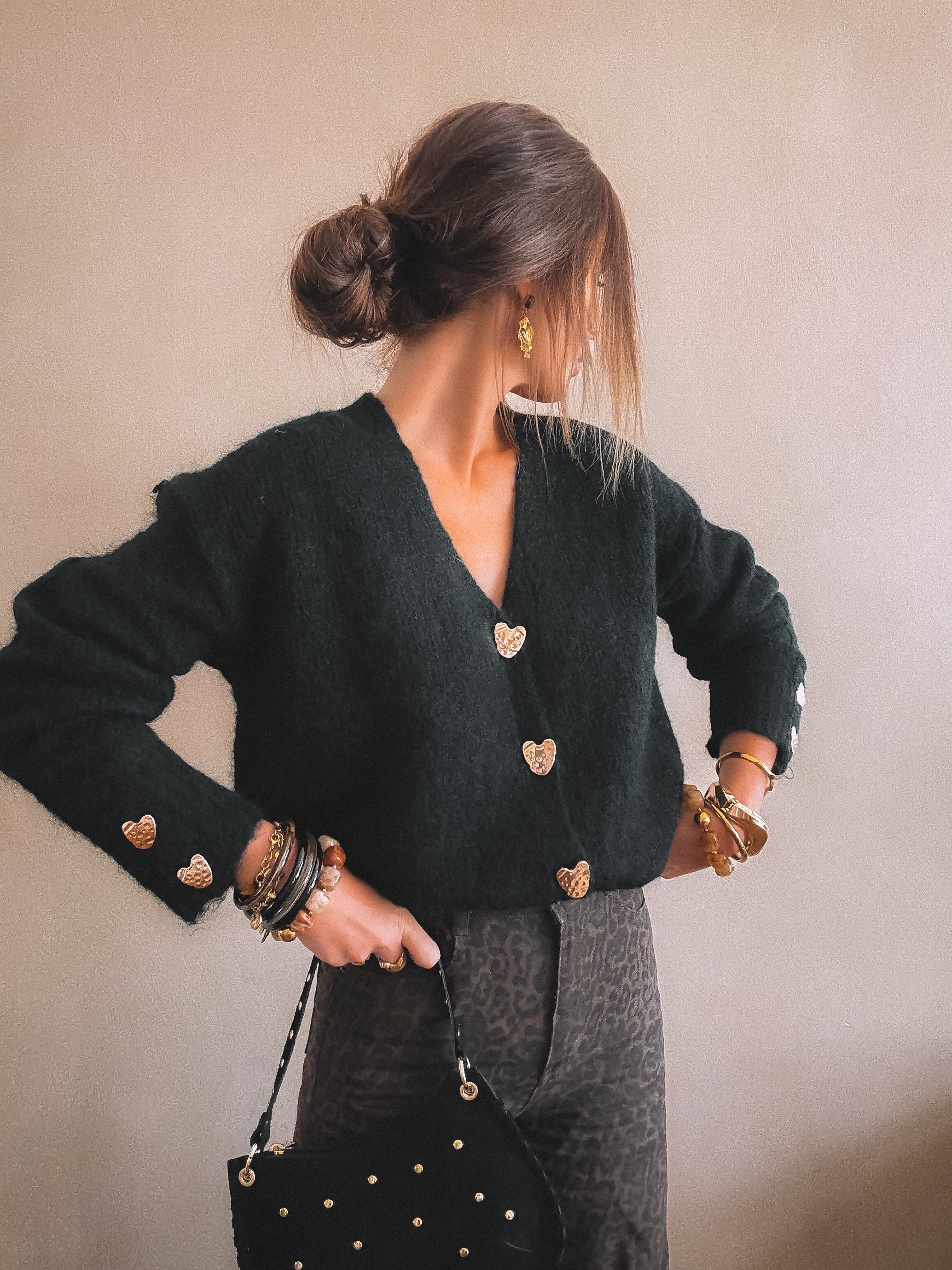• Fermeture par boutons en forme de cœur de couleur doré + au niveau des manches