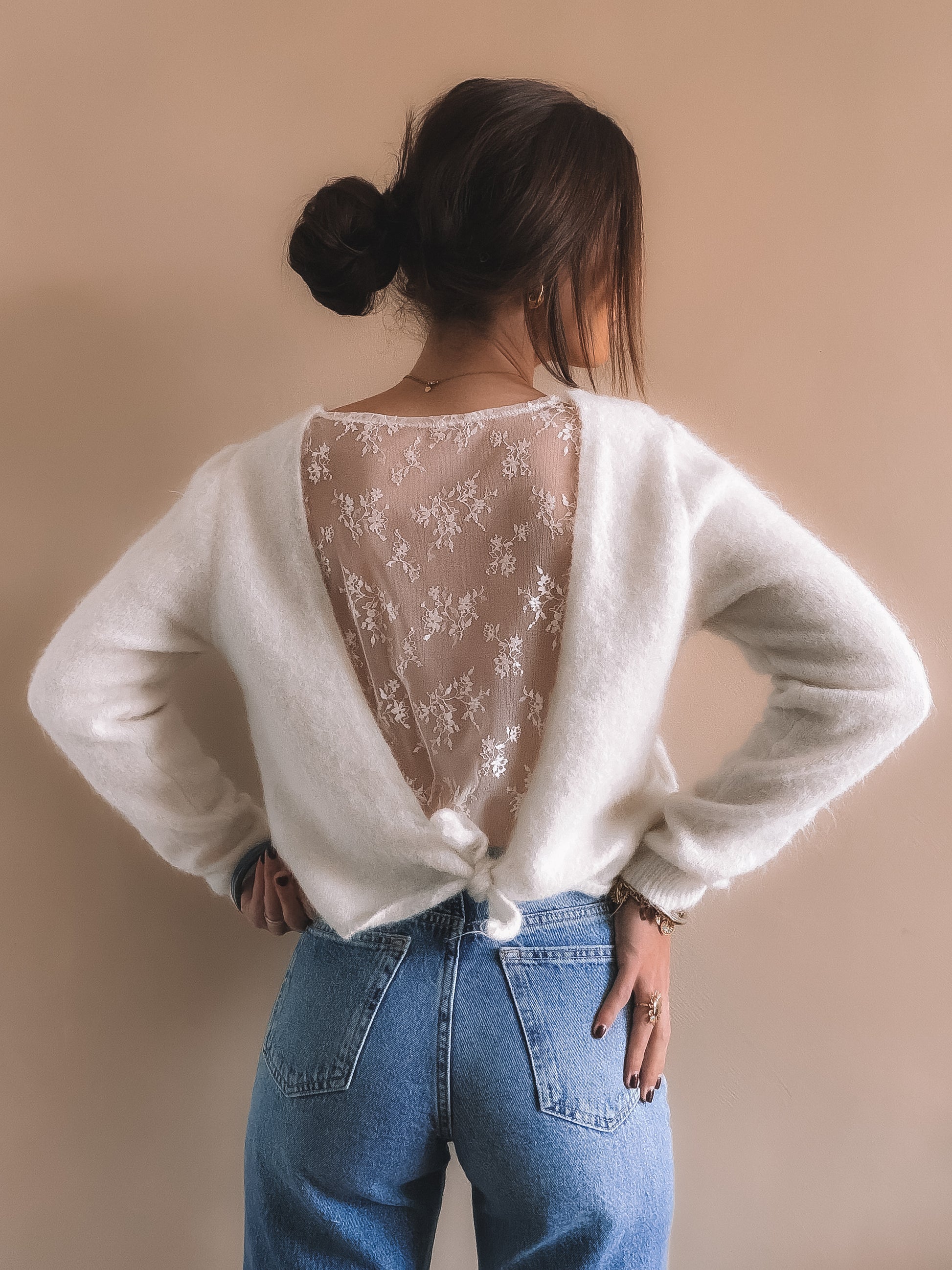 • Pull blanc avec lien à nouer