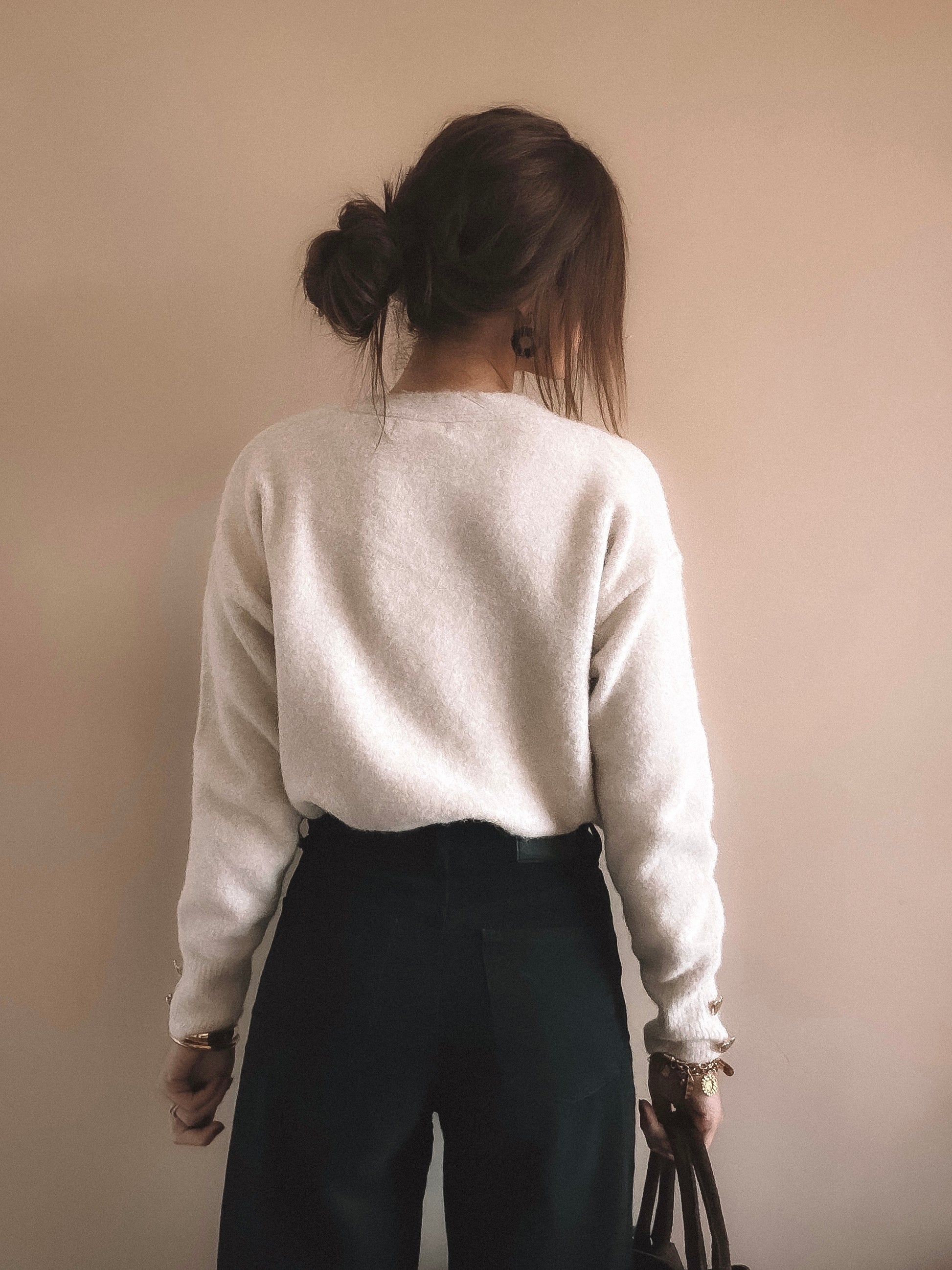 • Col en forme de "V", matière toute douce et agréable a porter, boutons en forme de cœur doré
