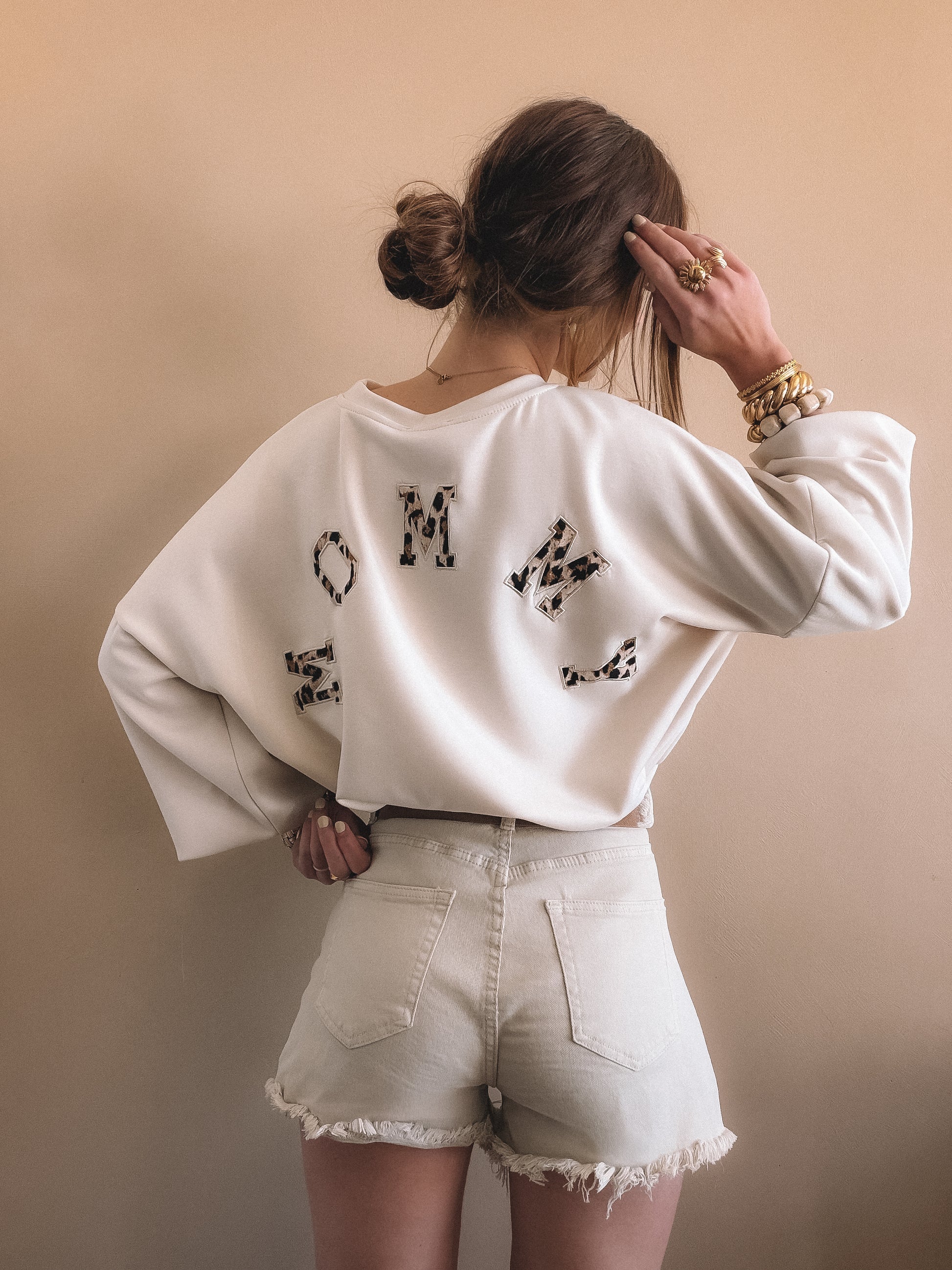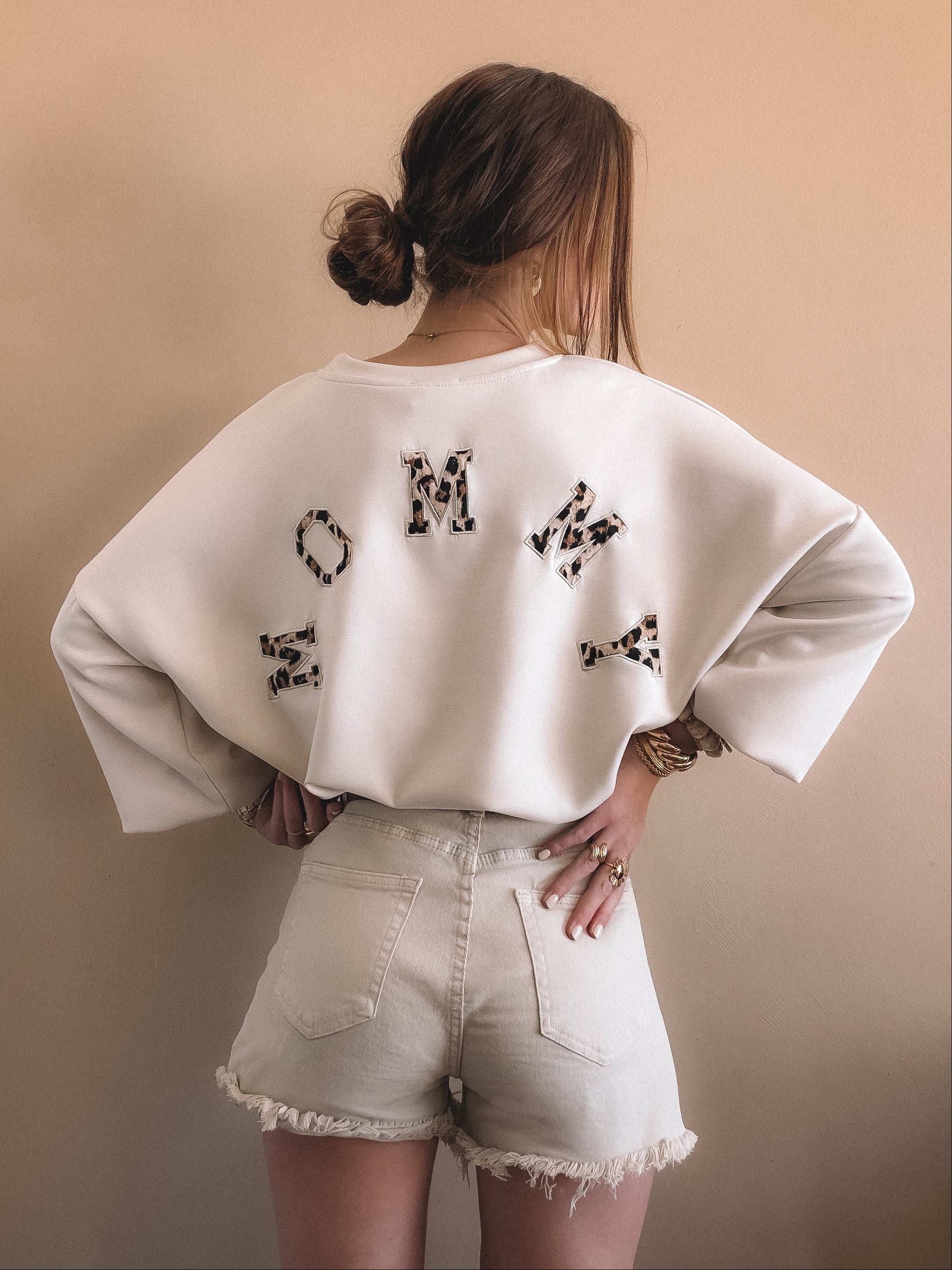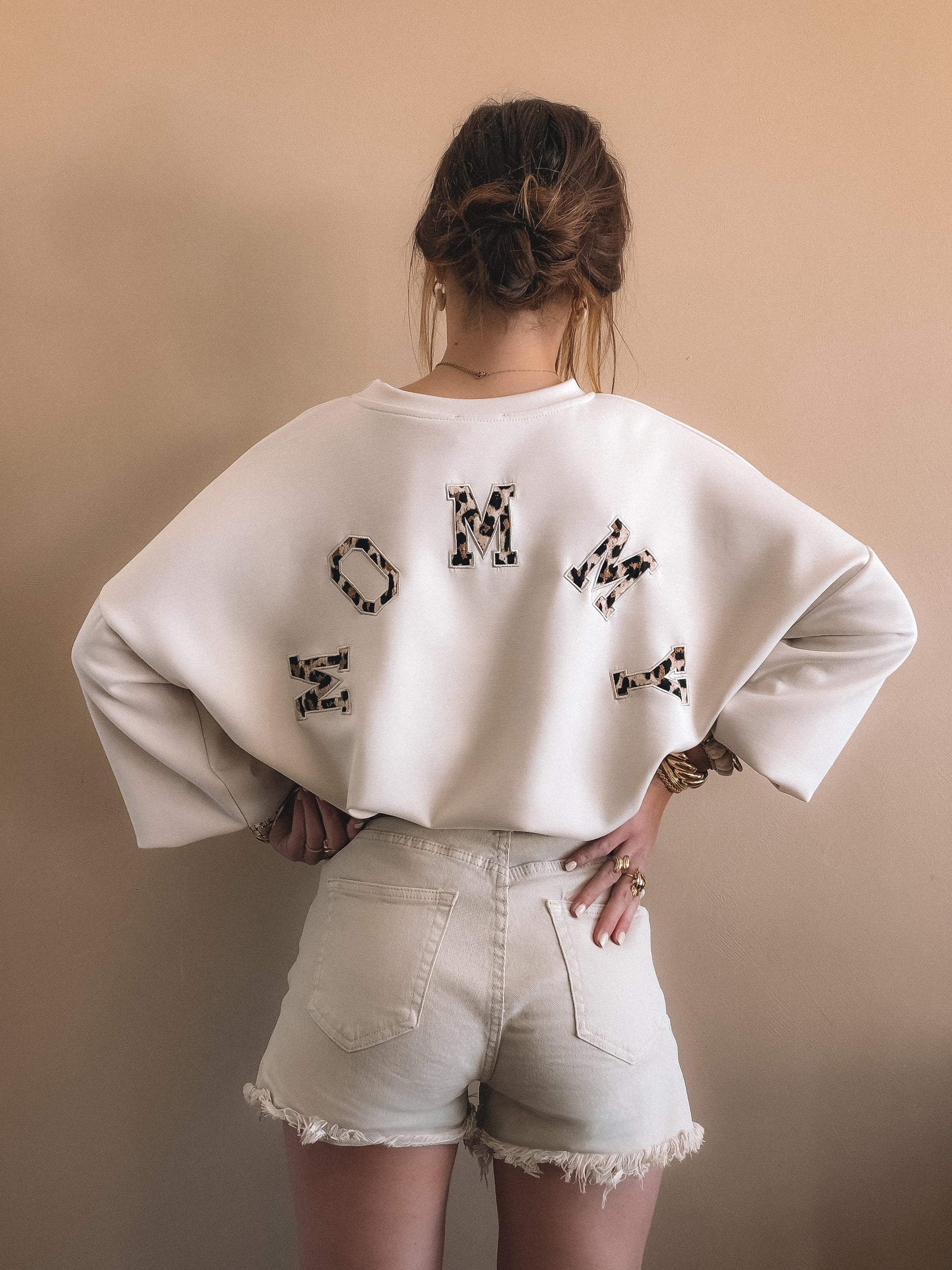 • Couleur ecru, inscription MOMMY leopard dans le dos