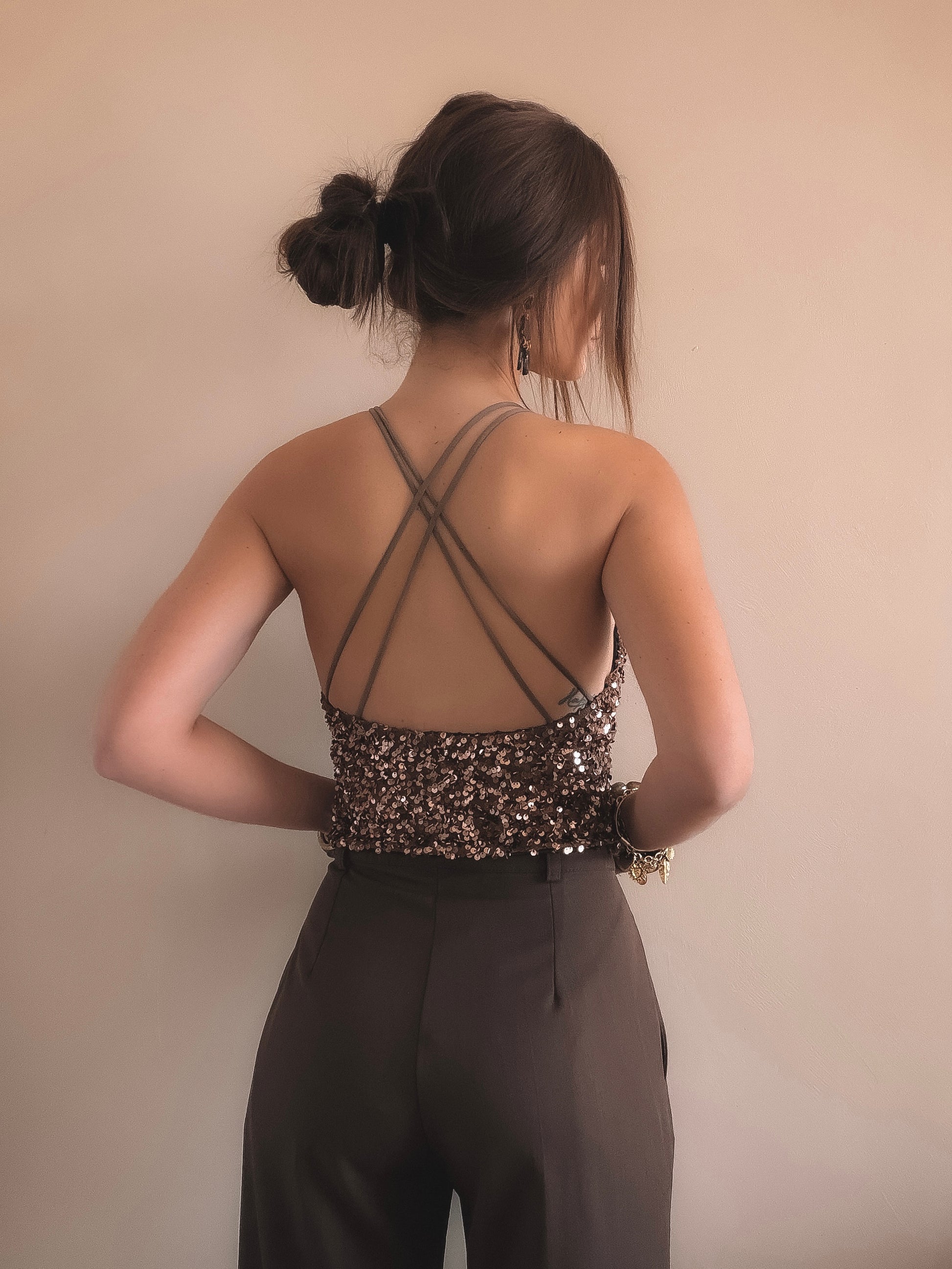 • Top au sequins Camel qui accrochent la lumière a chaque mouvement