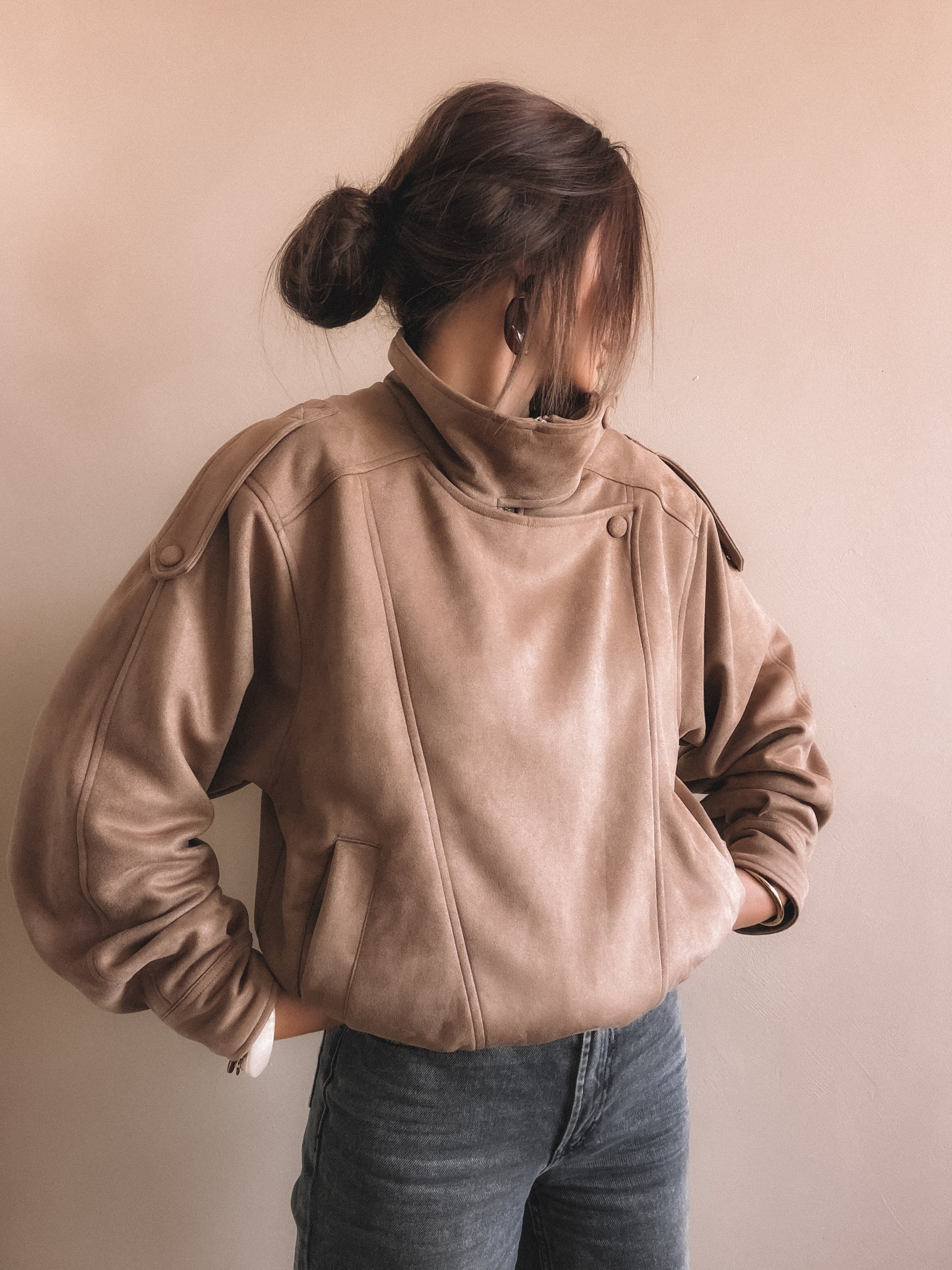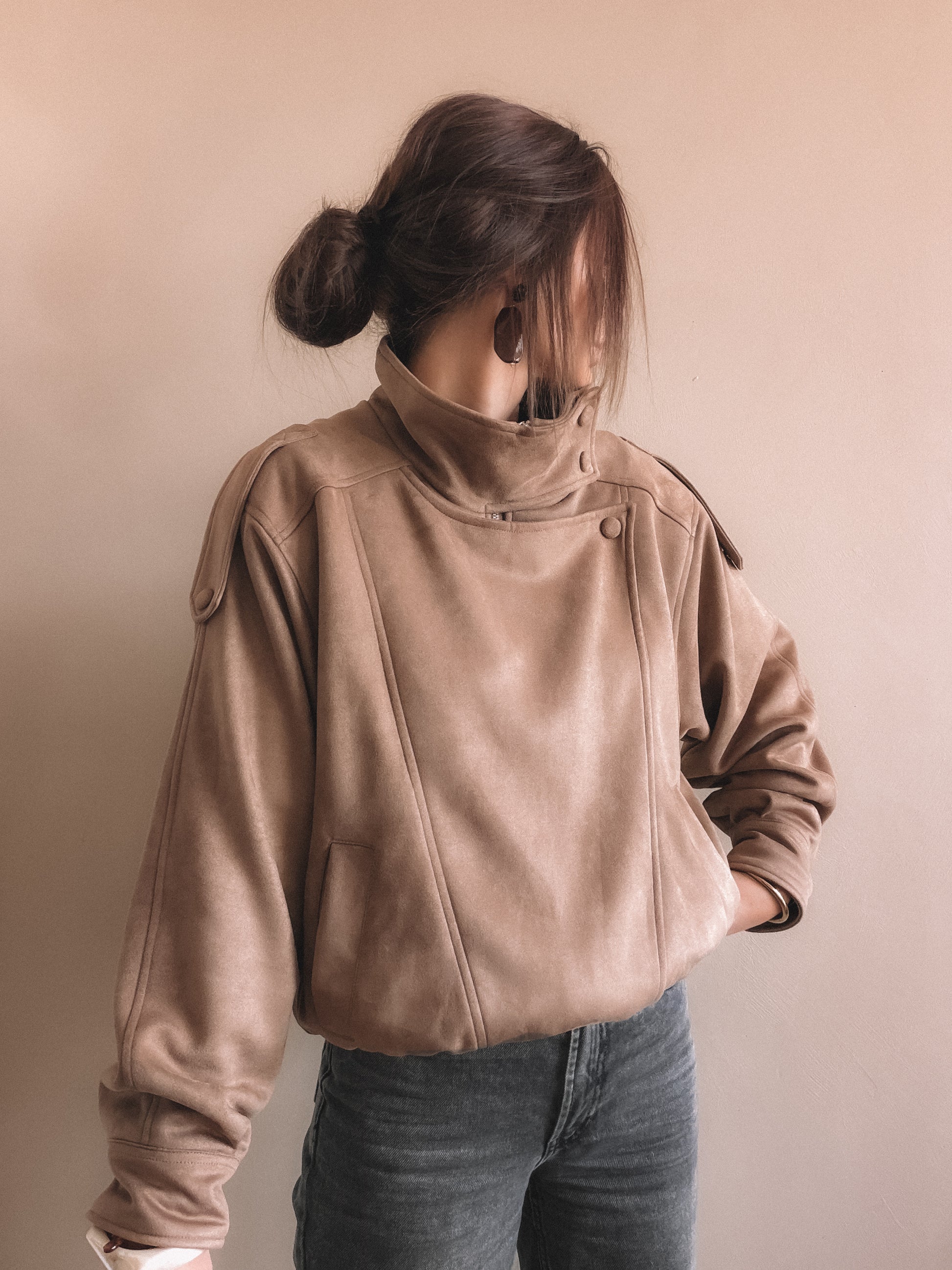 • Over size, col montant structuré , pièce parfaite pour un look casual chic. Facile a associer avec un jean ou une robe, elle apporte ce cote effortless et tendance qu'on adore