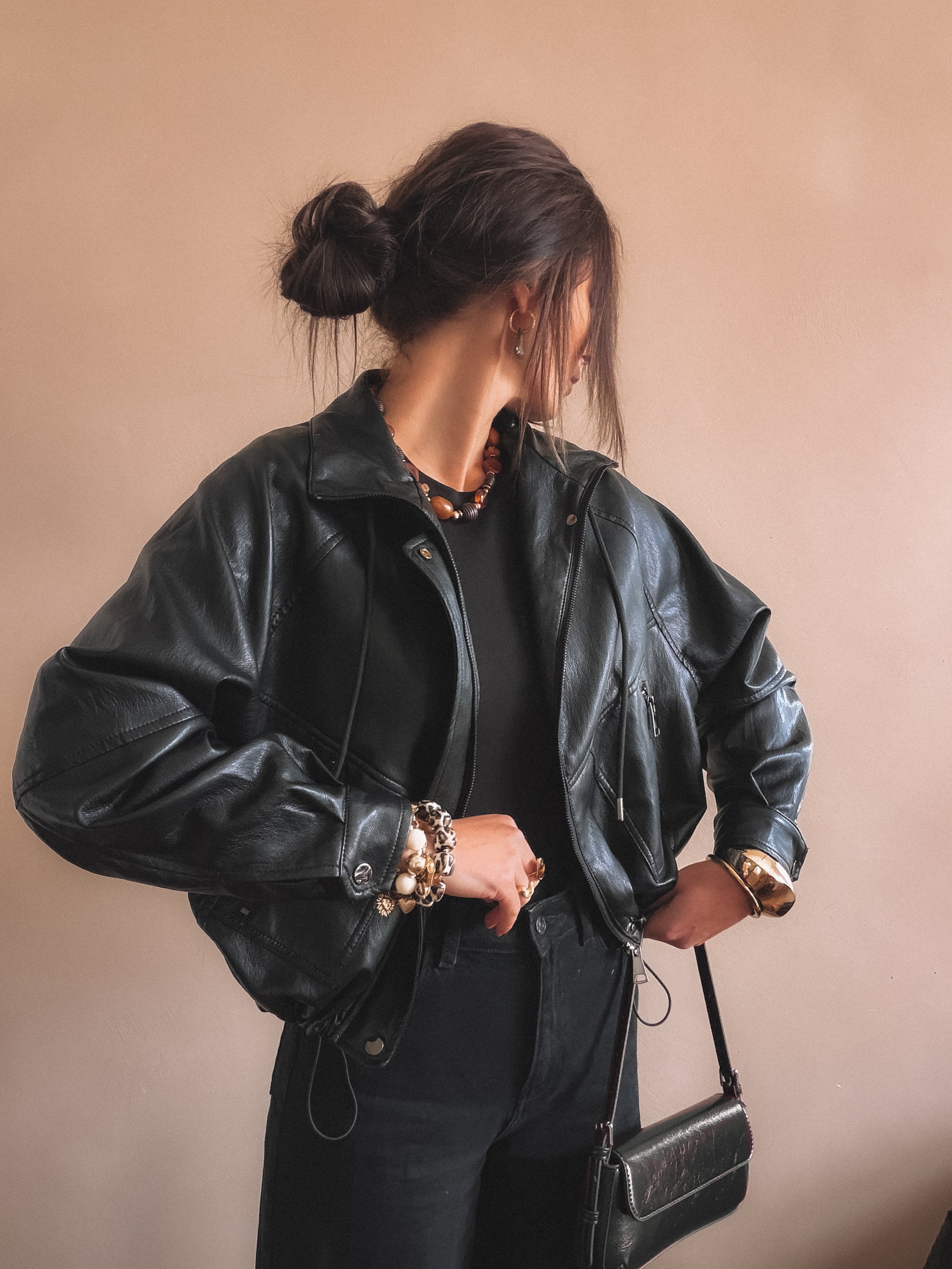 • Couleur noir, fermeture par zip, coupe over size ballon, ajustable à la taille, détails soignés, entièrement doublée.